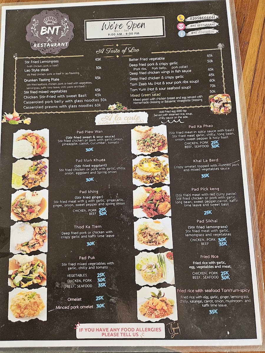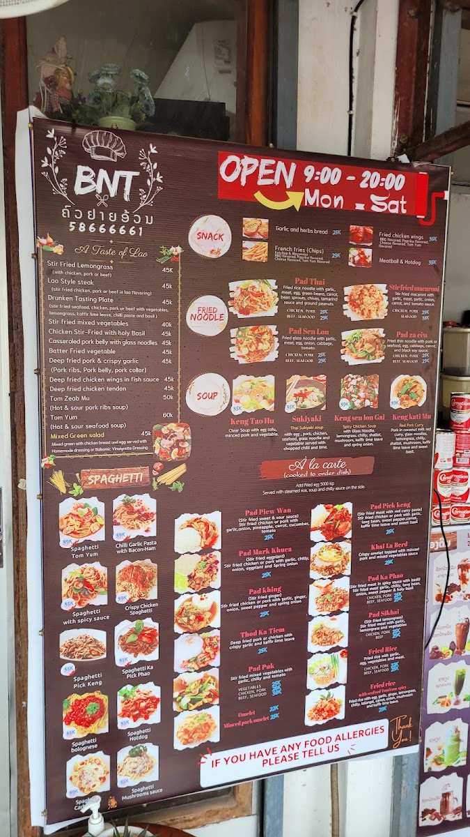 Welcome to BNT Restaurant, a hidden gem in the heart of Luang Prabang, Laos, showcasing a menu filled with delightful culinary treasures. The offerings here are as generous as they are delicious, with dishes that focus on freshness and vibrant flavors. Diners rave about the chicken stir-fried in red curry and the seafood fried rice, which many describe as the best they’ve ever had. Each portion is abundant, ensuring you leave satisfied.